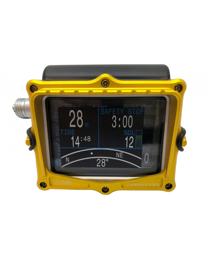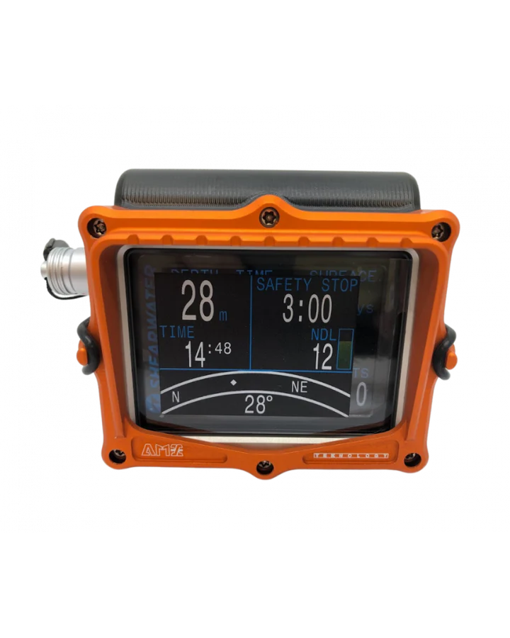 The new PETREL Generation 2 and 3 Titanium Protector has been developed to improve the protection of your Shearwater dive computer. This new design does not require any removal of the porthole screws. It simply covers the case over almost 10 mm. the side protection is improved and the hold in position is perfect. The unit is held by a bungee for safety.