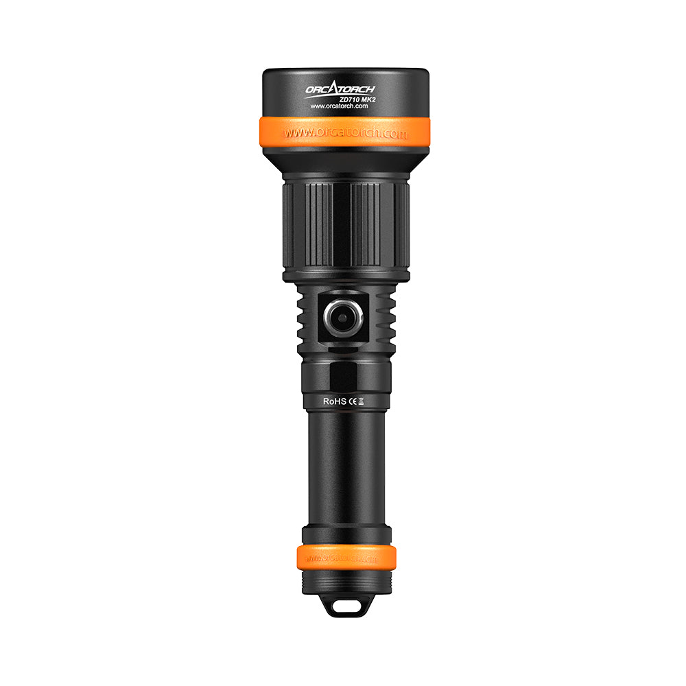 The all-new innovative OrcaTorch ZD710 MK2 zoomable dive flashlight meets your needs with an impressive maximum intensity of 212,500 cd and a versatile 4-72° adjustable beam angle.