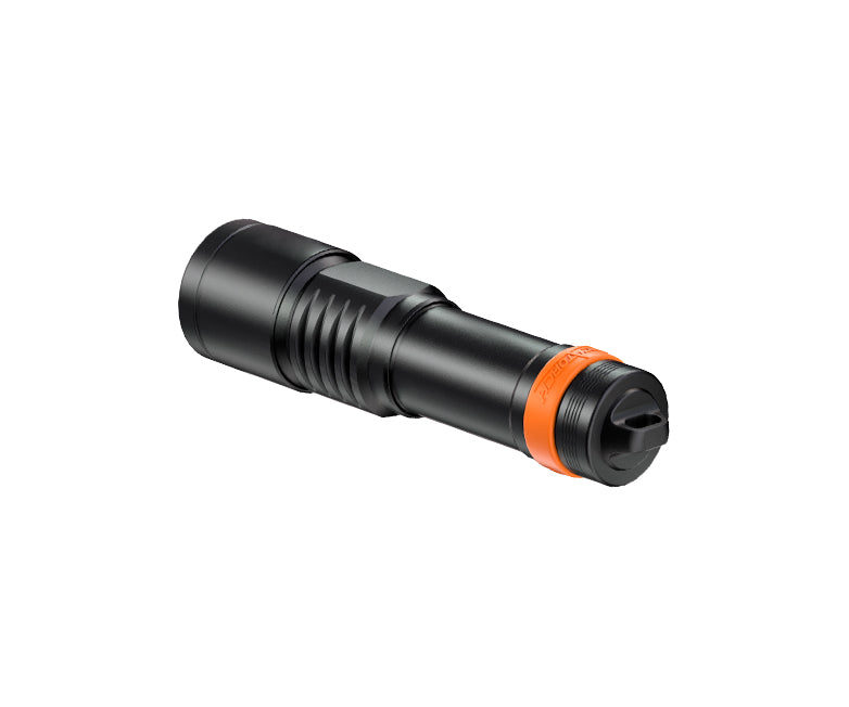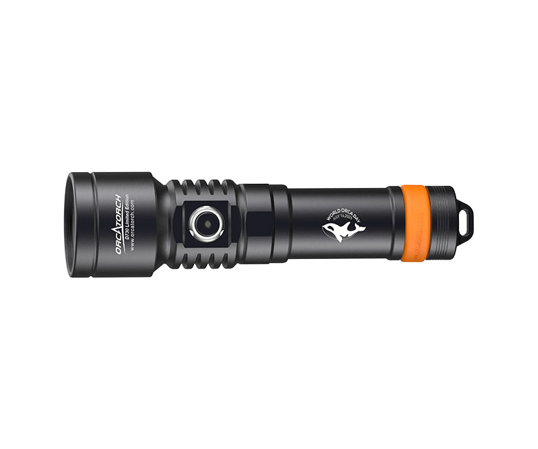OrcaTorch D730 is a limited edition laser dive light created to commemorate World Orca Day on July 14. It has two lighting sources: green laser and white beam. The green laser beam distance can reach over 1000 meters. The white beam max brightness is max 2500 lumens, and the beam angle is super focus 8°. Also D730 has SOS function. So it is very suitable for diving rescue, signal indication, recreational diving, cave diving, and attracting marine organisms, etc. lt uses one 5000mAh 21700 USB-C rechargeable battery, which is very convenient for charging.