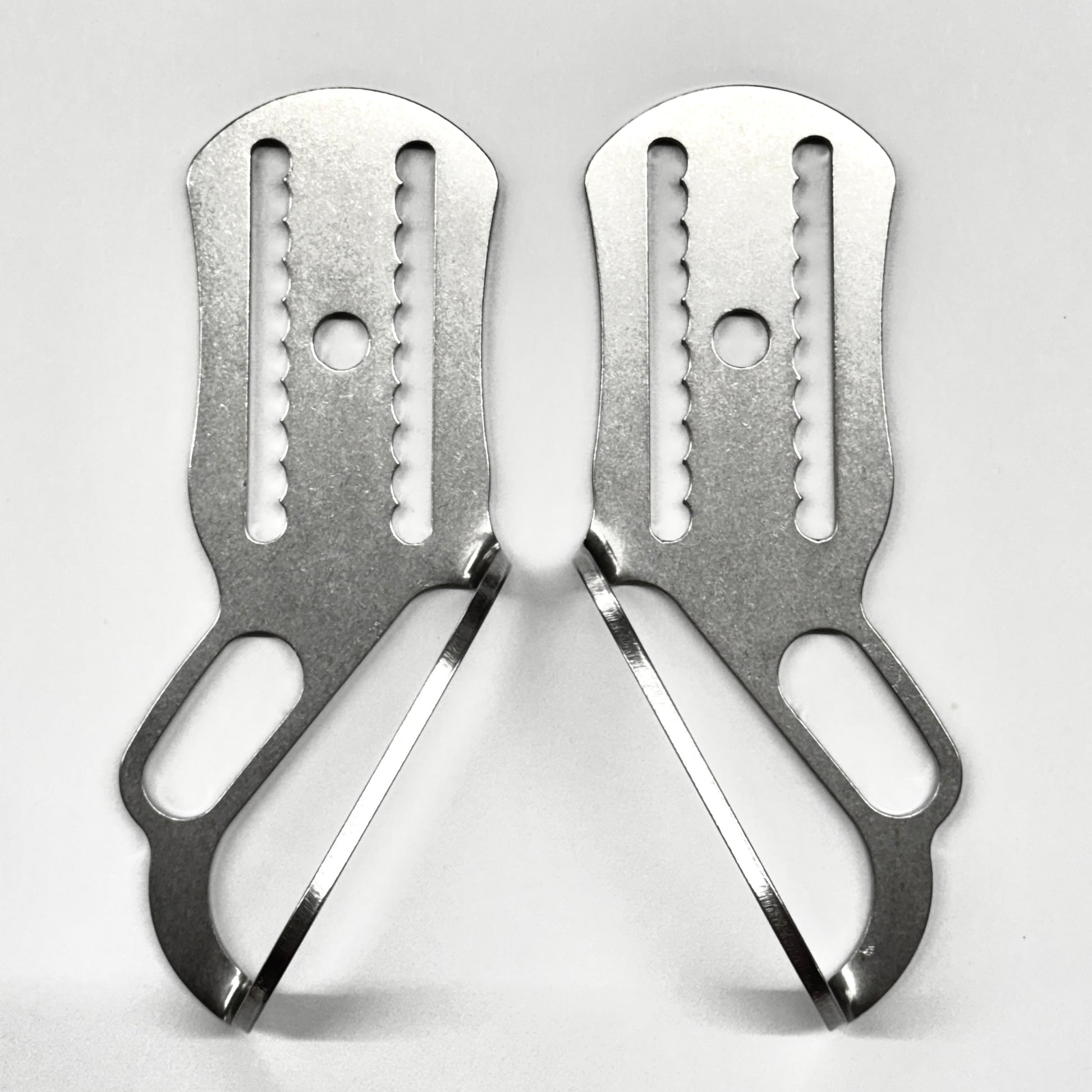 All SUMP UK Harness parts are made in the USA by Explorer Technology LLC. These parts are laser cut from 0.100” 2.5mm 316 Stainless Steel then tumbled in our 2 stage parts tumbler to provide a smooth and uniform finish with rounded edges and no burrs.
