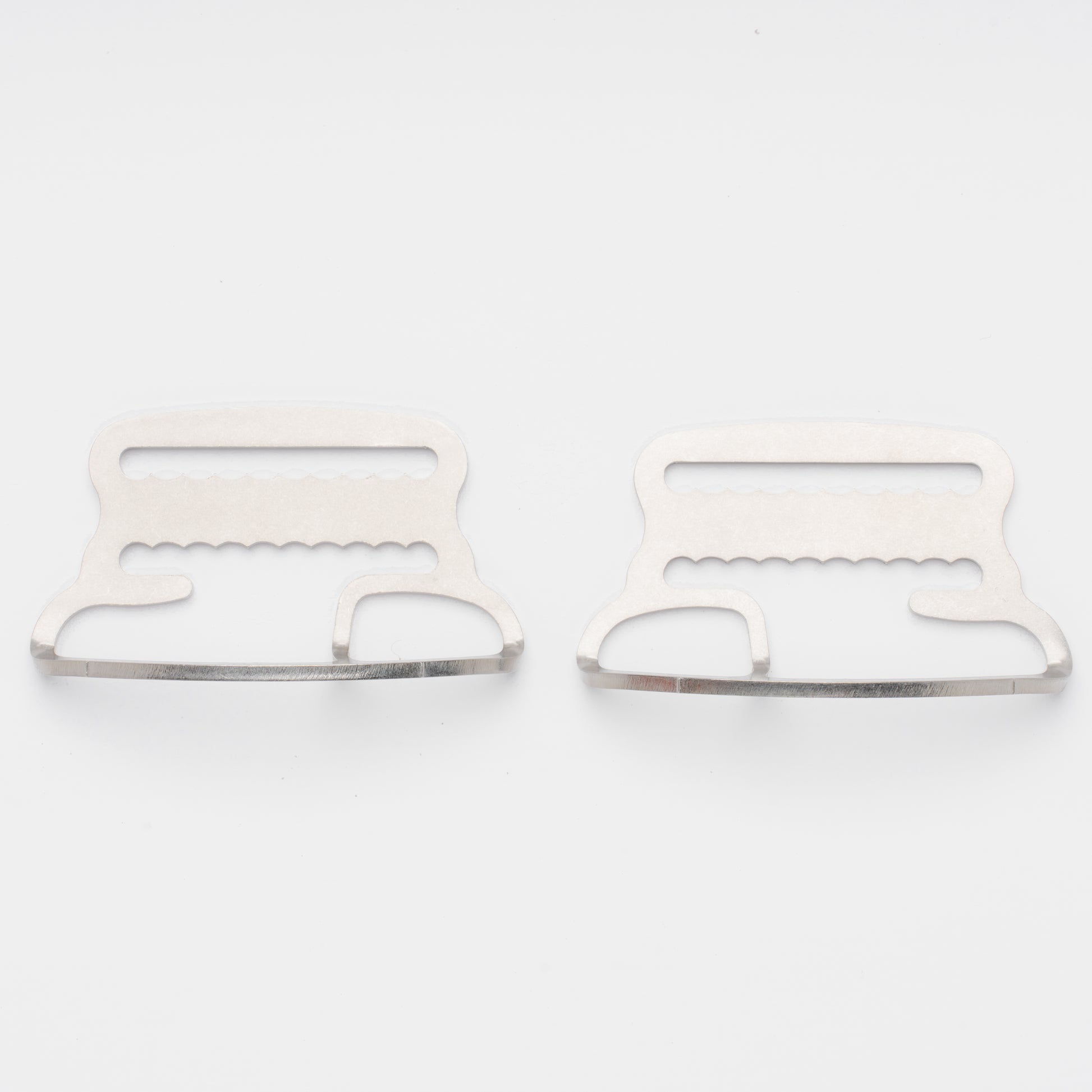 All SUMP UK Harness parts are made in the USA by Explorer Technology LLC. These parts are laser cut from 0.100” 2.5mm 316 Stainless Steel then tumbled in our 2 stage parts tumbler to provide a smooth and uniform finish with rounded edges and no burrs.