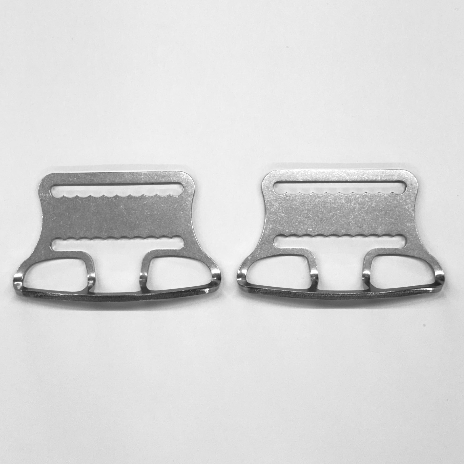 All SUMP UK Harness parts are made in the USA by Explorer Technology LLC. These parts are laser cut from 0.100” 2.5mm 316 Stainless Steel then tumbled in our 2 stage parts tumbler to provide a smooth and uniform finish with rounded edges and no burrs.